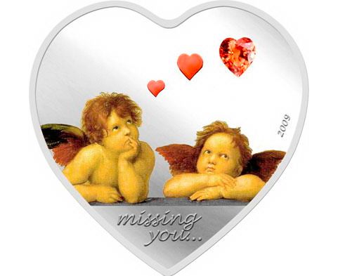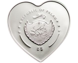 Монета Сердце Missing you 5 $ 2009 Серебро Палау