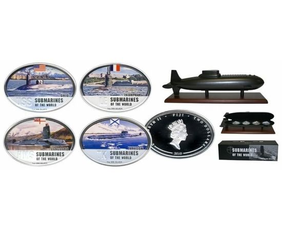 Монета Подводные лодки. 2 $ 2010 Серебро Фиджи