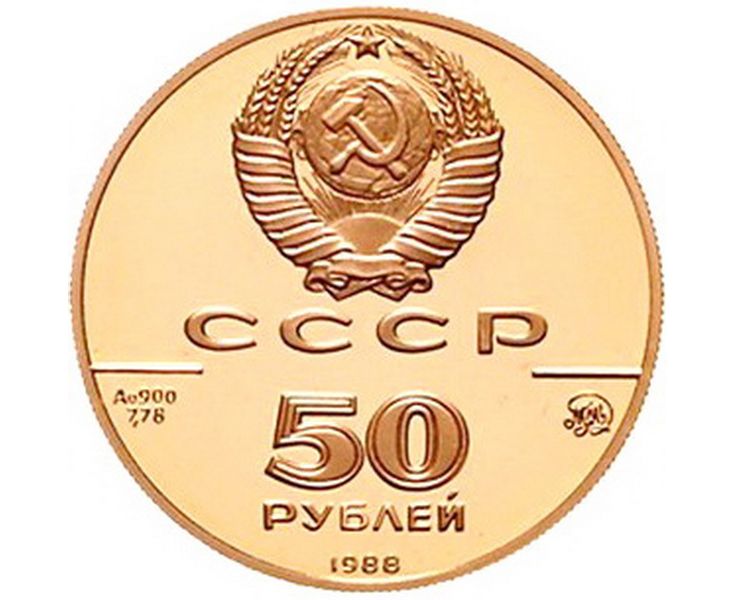 Монета Софийский собор. Великий Новгород 50 рублей 1988 Золото СССР