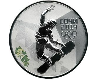 Монета Сноуборд. Сочи 2014 3 рубля 2012 Серебро Россия